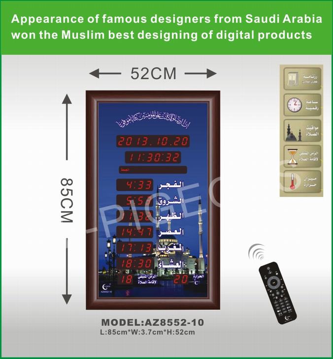 can be configured to display the authorized prayer times in the cities and villages all over the world.