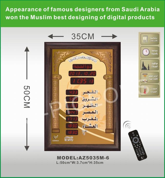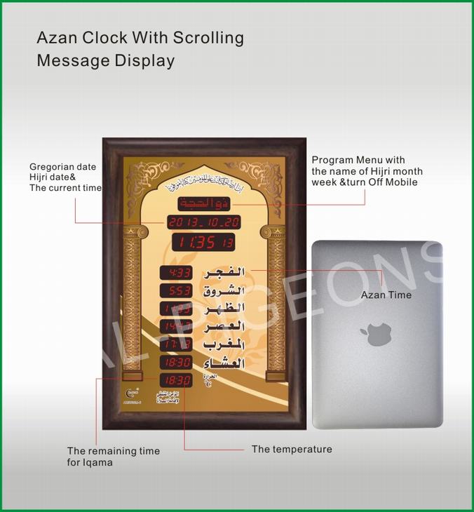 can be configured to display the authorized prayer times in the cities and villages all over the world.