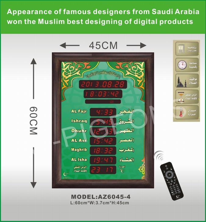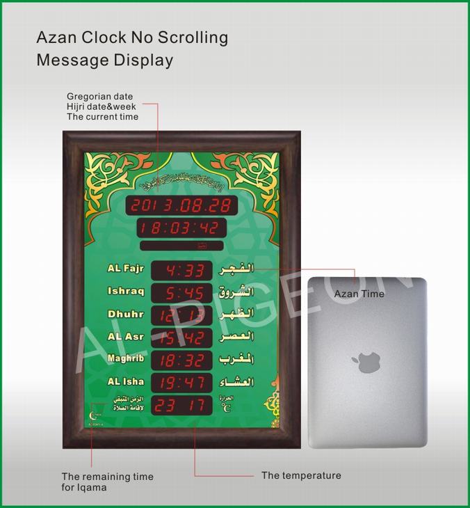 can be configured to display the authorized prayer times in the cities and villages all over the world.