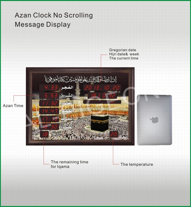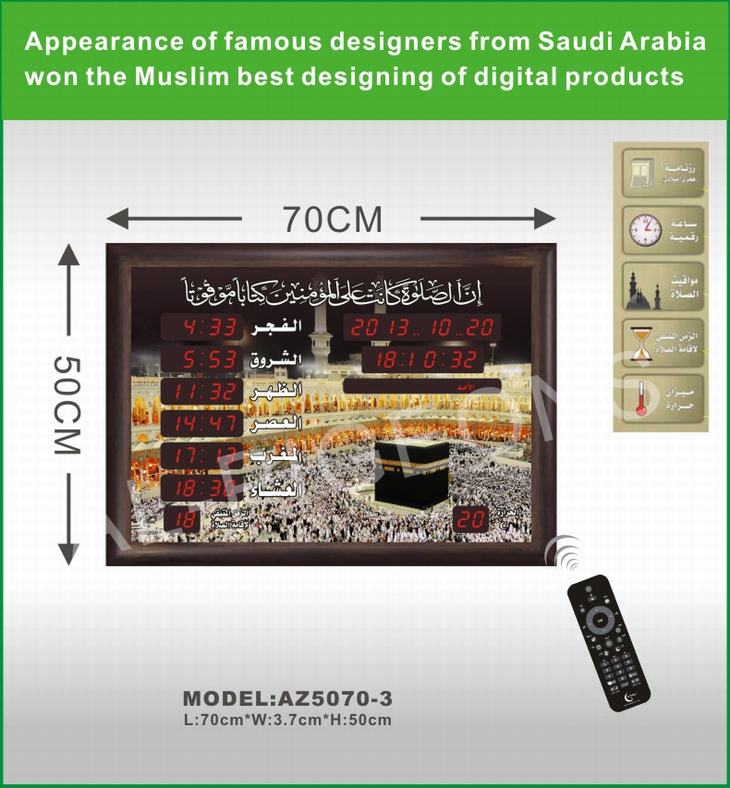 can be configured to display the authorized prayer times in the cities and villages all over the world.