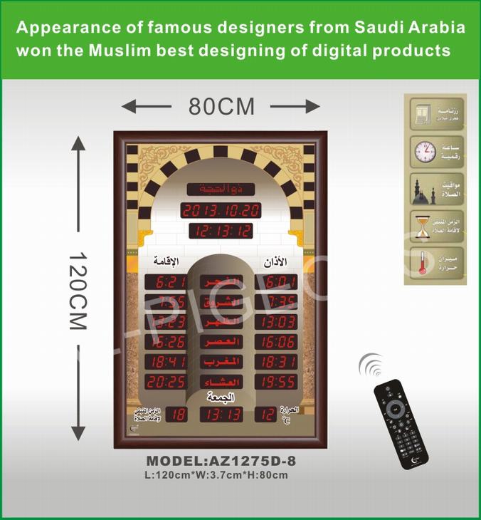 can be configured to display the authorized prayer times in the cities and villages all over the world.