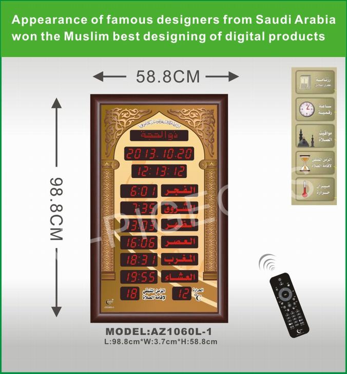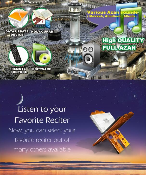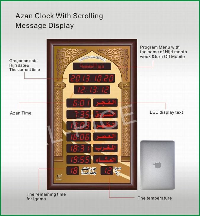 can be configured to display the authorized prayer times in the cities and villages all over the world.