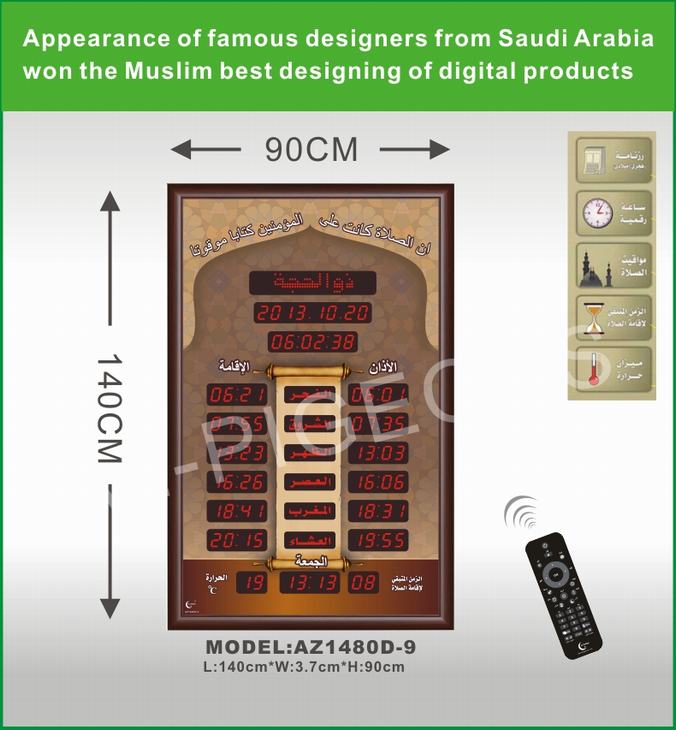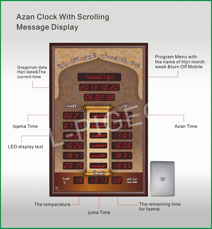 can be configured to display the authorized prayer times in the cities and villages all over the world.
