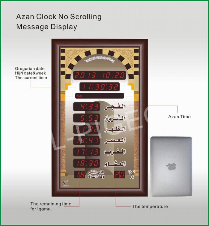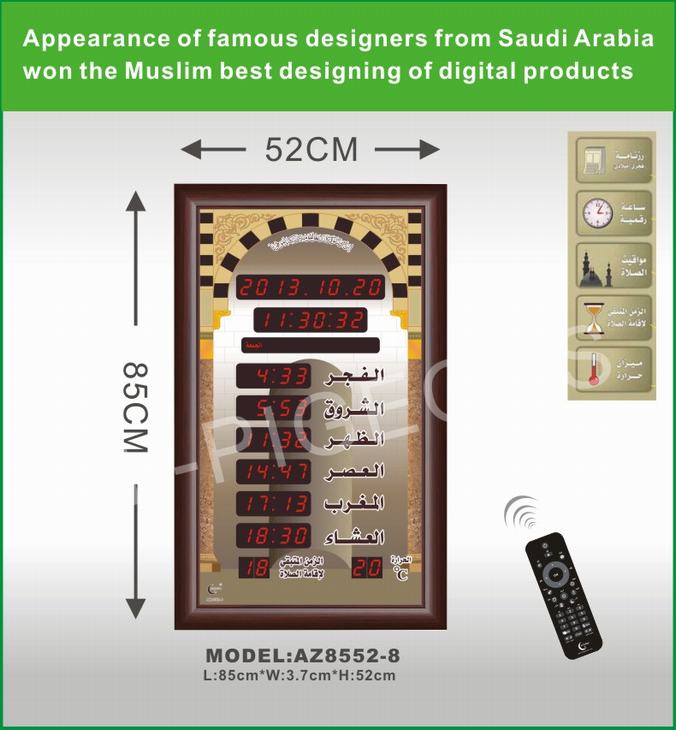 can be configured to display the authorized prayer times in the cities and villages all over the world.