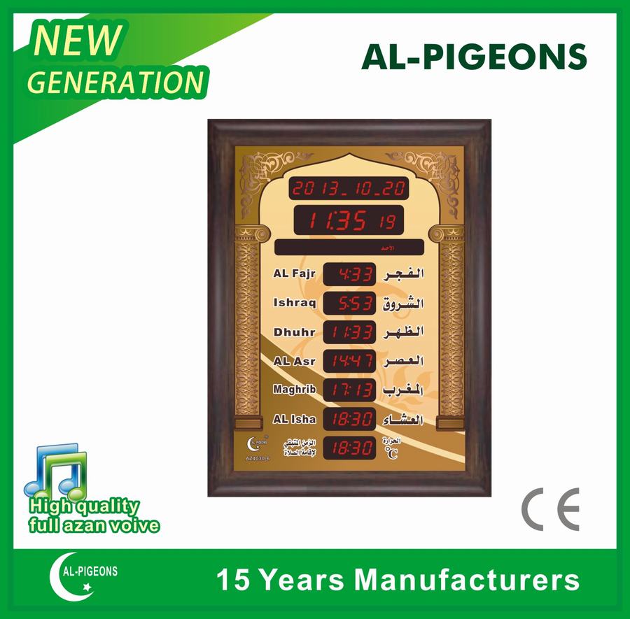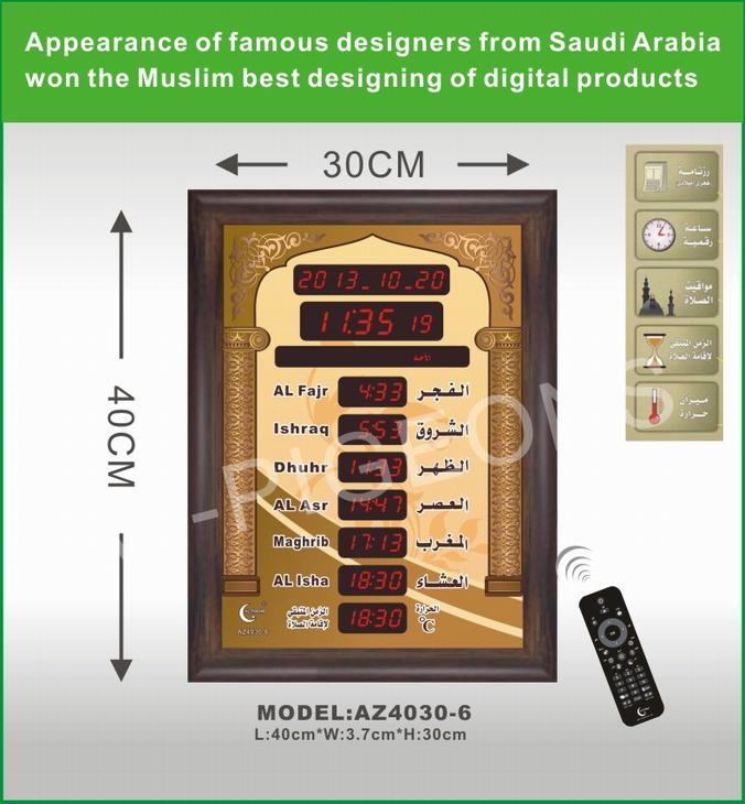 can be configured to display the authorized prayer times in the cities and villages all over the world.