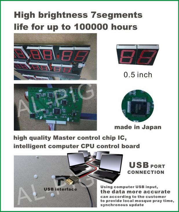 can be configured to display the authorized prayer times in the cities and villages all over the world.