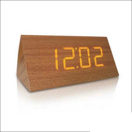 1.Material: MDF; 2.Calendar with time and day; 3.Alternately display time and day; 4.Alarm clock; 5.Rmk: Power input : 110V~240V / 50~60HZ; output : DC5V/500MA.