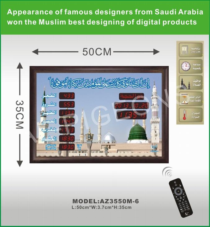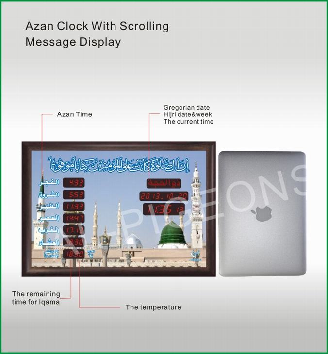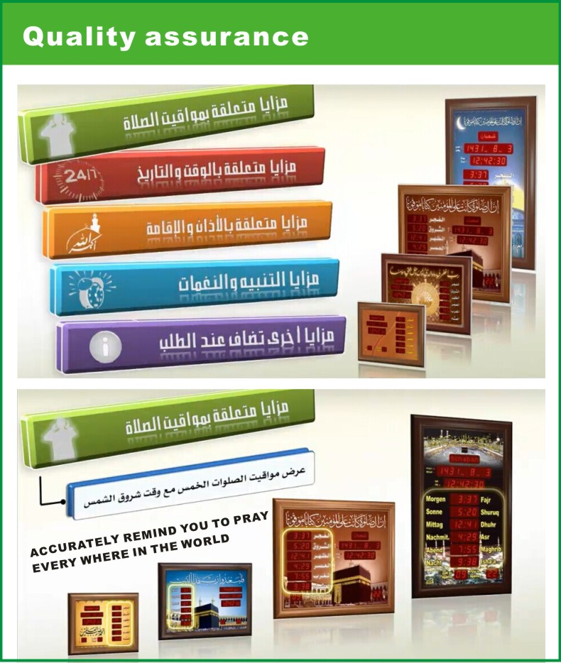 can be configured to display the authorized prayer times in the cities and villages all over the world.
