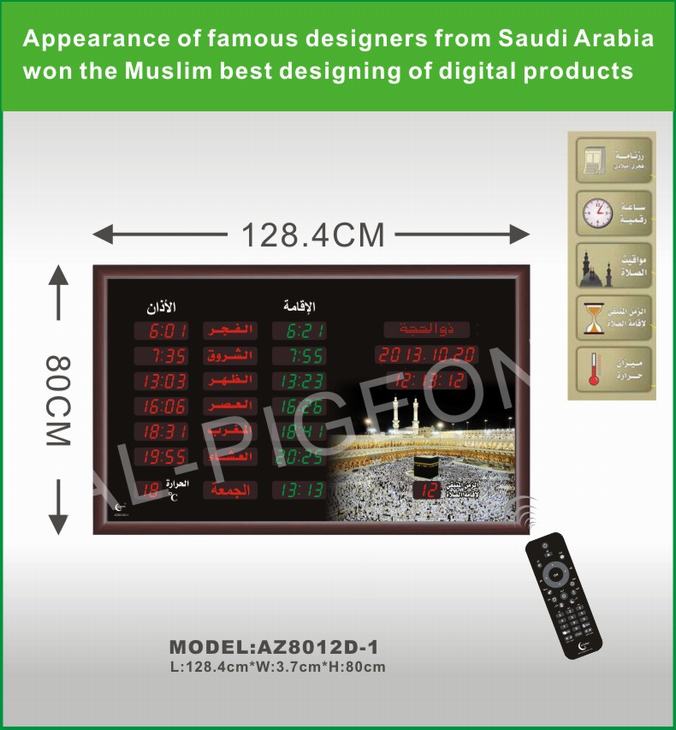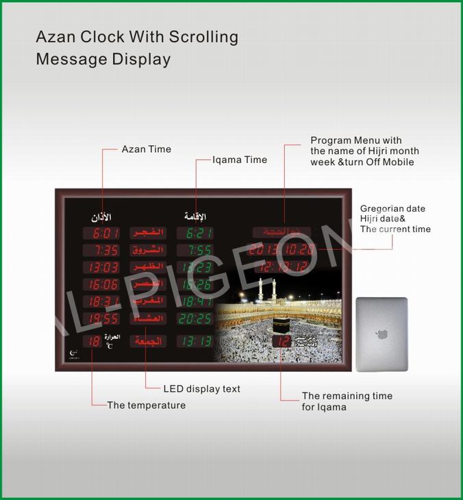 can be configured to display the authorized prayer times in the cities and villages all over the world.