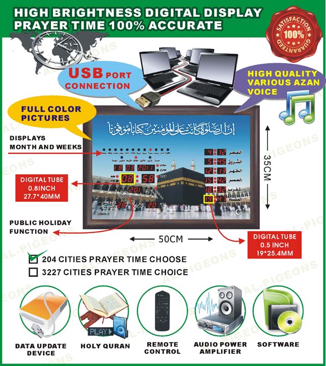 We are the biggest Muslim products manufacturers,who development, production, sales LED and LCD Prayer clock in mainland. all our product with independent intellectual property rights,we have the first-class research and develop, manage, manufacture team, at present, our company is oriented towards the whole world and looking for the agent and dealer sincerely, Expect your joining, let us make a more magnificent future hand in hand together!