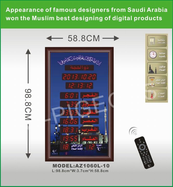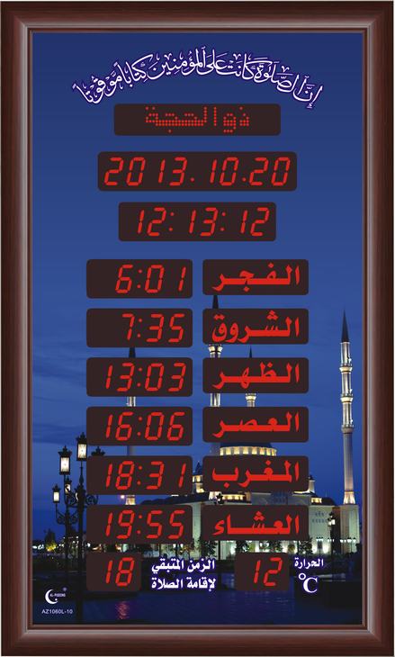 can be configured to display the authorized prayer times in the cities and villages all over the world.