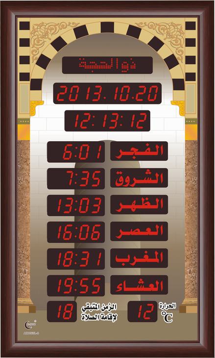 can be configured to display the authorized prayer times in the cities and villages all over the world.