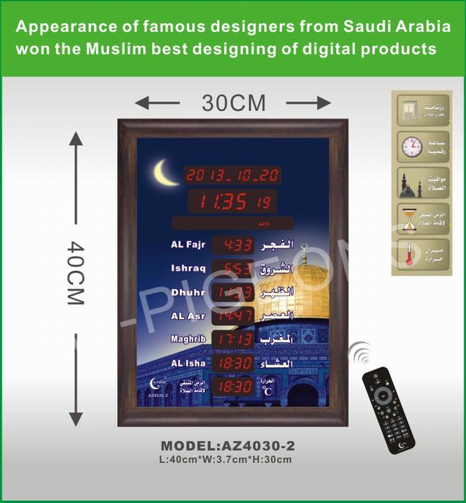 1、邦克钟是自动显示100年日历/伊斯兰日历,月份,星期,时间