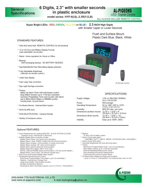 6 Digits, 2.3" with smaller secondsin plastic enclosure