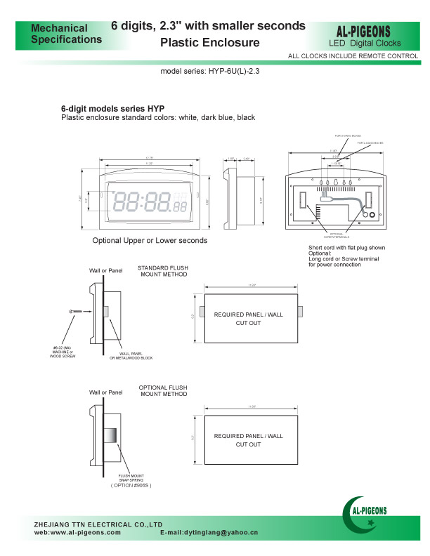产品名称:6 Digits, 2.3" with smaller secondsin plastic enclosure