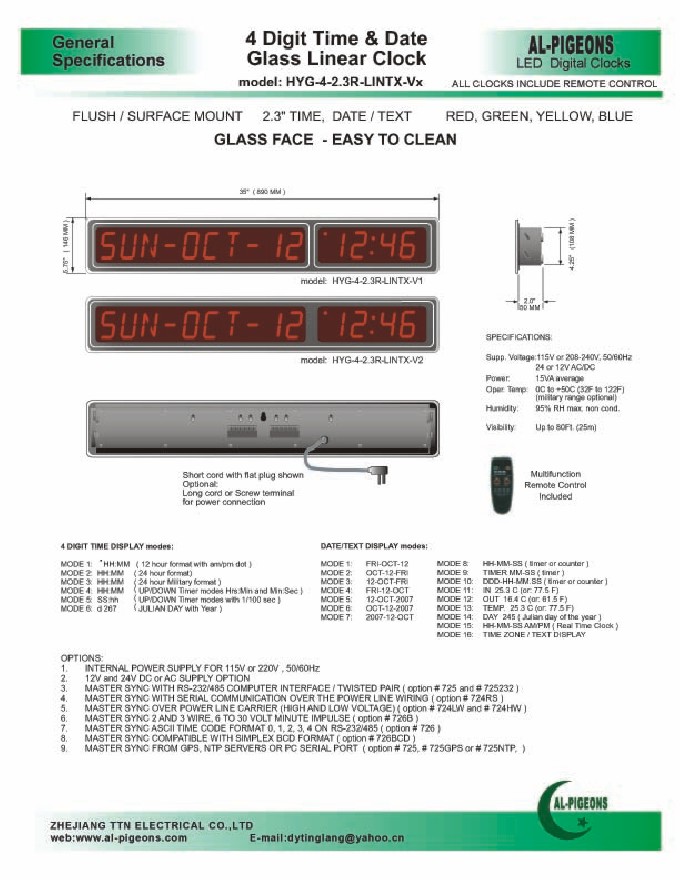 产品名称:4 Digit Time & DateGlass Linear Clock