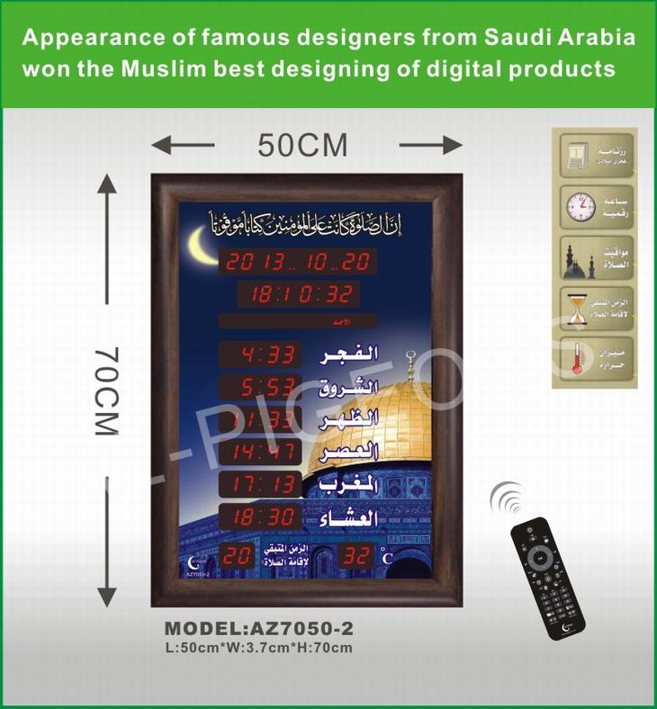 1、邦克钟是自动显示100年日历/伊斯兰日历,月份,星期,时间